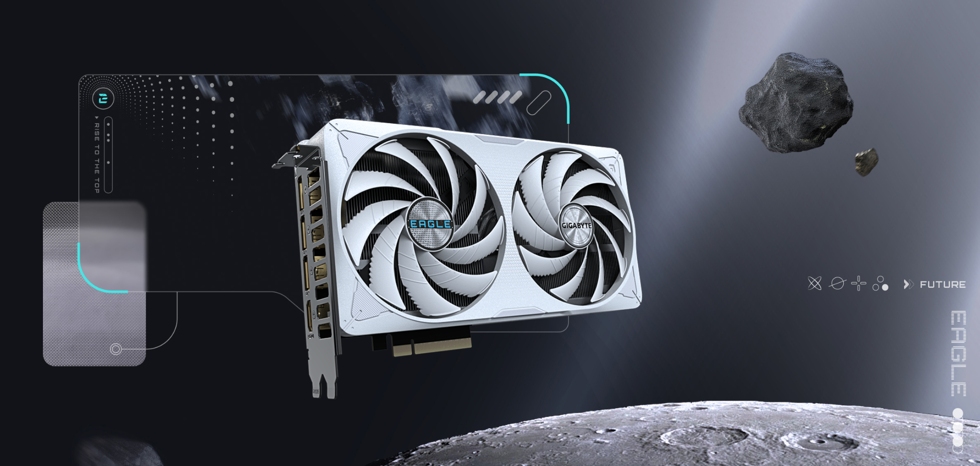 - طراحی ICE (سفید/نقرهای): مدل EAGLE OC ICE دارای روکش و فنهای به رنگ سفید یا نقرهای روشن است. این طراحی زیبا برای کاربرانی که ستاپهای PC با تم رنگی روشن، سفید یا نقرهای میسازند، ایدهآل و بسیار جذاب است.