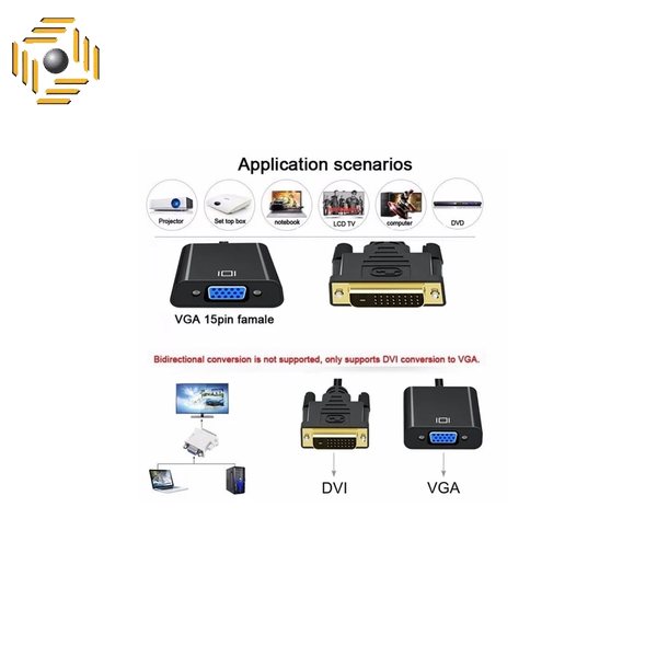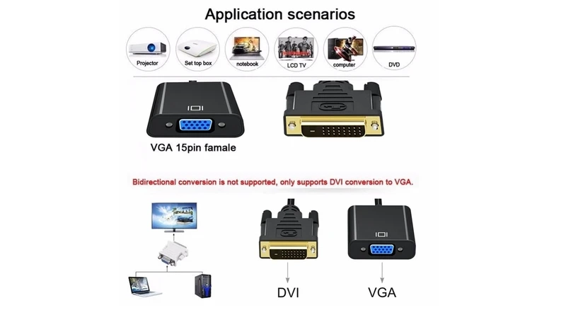 | تنها راهکار عملی برای اتصال گرافیکهای جدید DVI-D به مانیتور VGA. | تبدیل یکطرفه است (فقط DVI به VGA). |