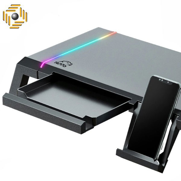 دارای ۵ پورت USB / دارای RGB / دارای ۲ حالت تنظیم ارتفاع / دارای کلید روشن و خاموش / جنس بدنه از پلاستیک و فلز / دارای کشو / دارای استند قرارگیری موبایل