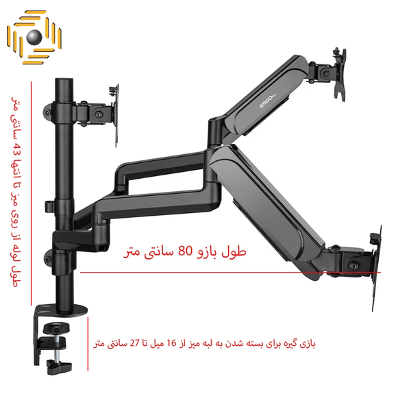 پایه سه مانیتور ارگو مدل WLA-۰۲۰ دارای دو بازو با مفاصل متحرک و مکانیزم فنری جهت تنظیم ارتفاع و یک نگهدارنده با قابلیت تنظیم ارتفاع دستی میباشد .قابلیت تنظیم ارتفاع، جهت و زاویهی مانیتور متناسب با شرایط فیزیکی کاربر را دارد . قابلیت چرخش ۳۶۰ درجه در هر سه بازو موجود میباشد .متناسب برای مانیتورهای تا وزن ۷ کیلوگرم .